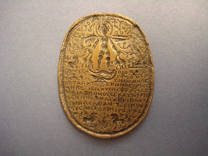 The use of magical amulets and charms was a common apotropaic (protecting against evil influences, spirits, or invisible forces) practice in Late Antiquity and Byzantium. This reflected the continuation of ancient Greco-Roman practices, but with the advent of Christianity, these ‘popular’ forms of veneration and self-protection were reframed through more ‘appropriate’ iconography: Christ, one of the Saints, or, very commonly, the Virgin Mary.1